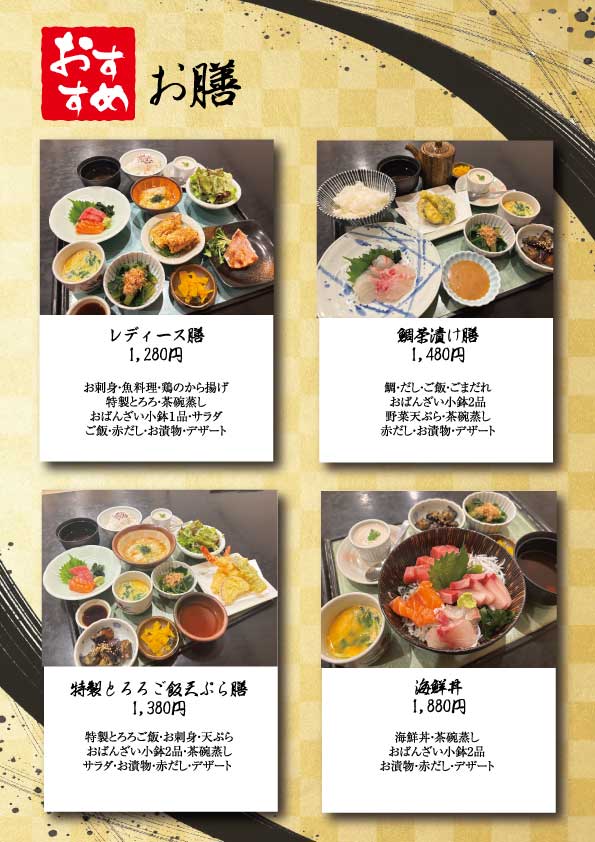 あなたの大切なシーンでのご利用や、大人数で利用できるお座敷もあり、宴会・会食などご用意を承ります。
