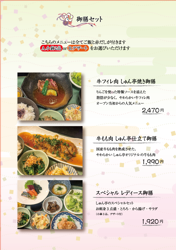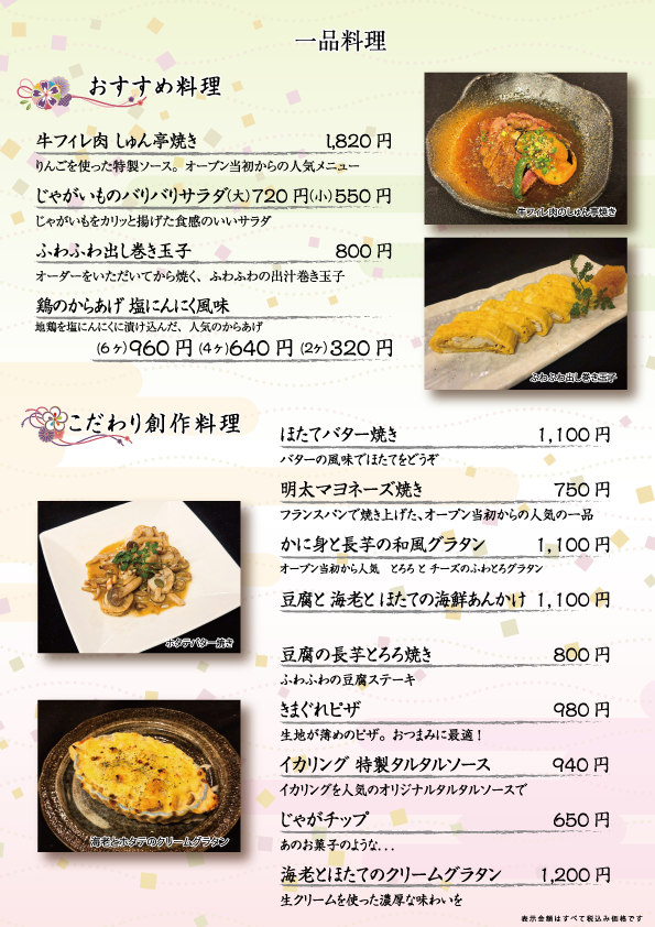 和風びすとろ しゅん亭では、安心してお召し上がれる四季折々の素材を一品一品丁寧に丹精込めて手作りしています。