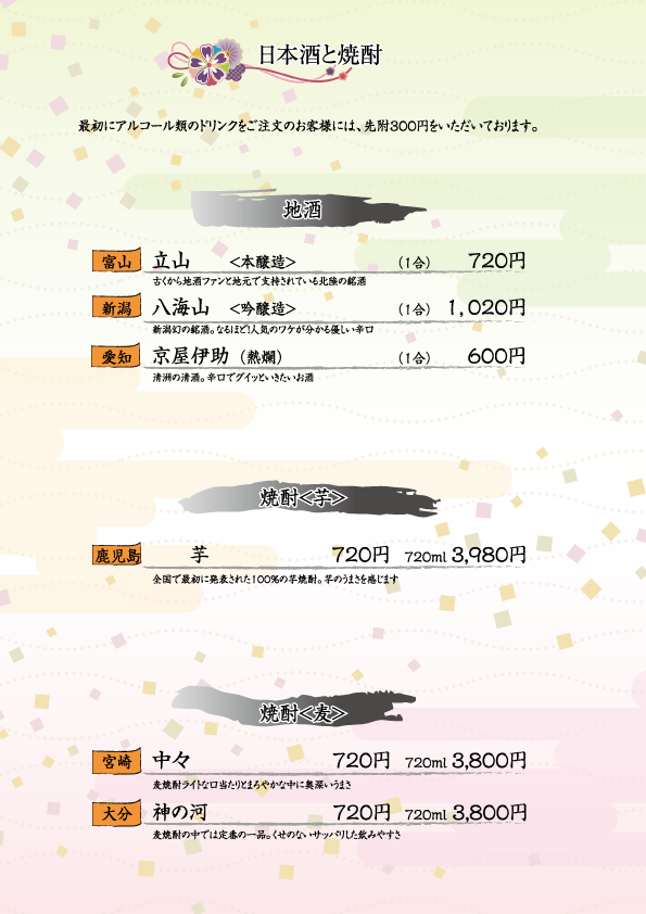 四季折々の食材を使いお客様がぬくもりや温かさを感じ、頑張る活力を提供できるように、今後も伝統的な技術や文化を大切にし、新しい手法にチャレンジしてお客様お一人お一人に少しでもお喜びいただけるよう取組んで参ります。