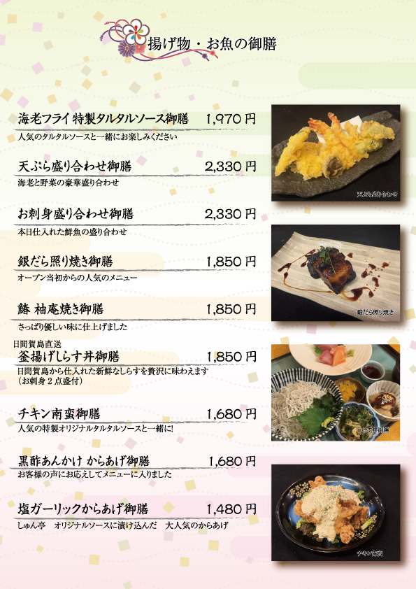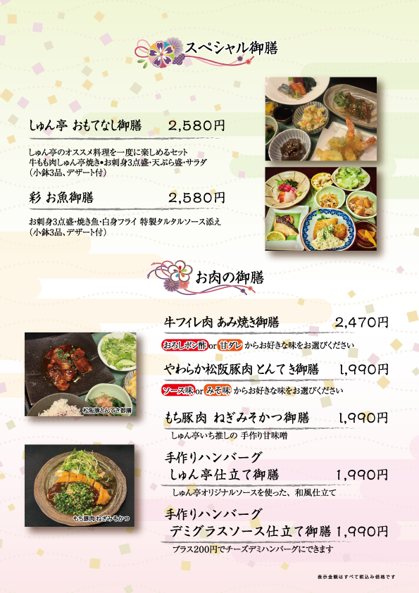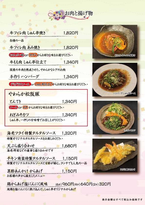 しゅん亭 アラカルトお持ち帰り【テイクアウト-TAKEOUT】